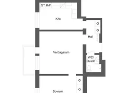 1 room with 34 m