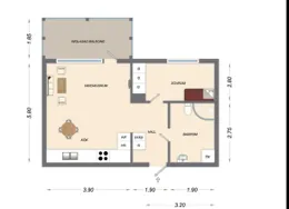 1 room with 21 m