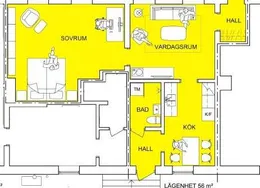 2 rooms with 56 m