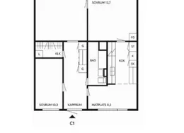 3 rooms with 81 m