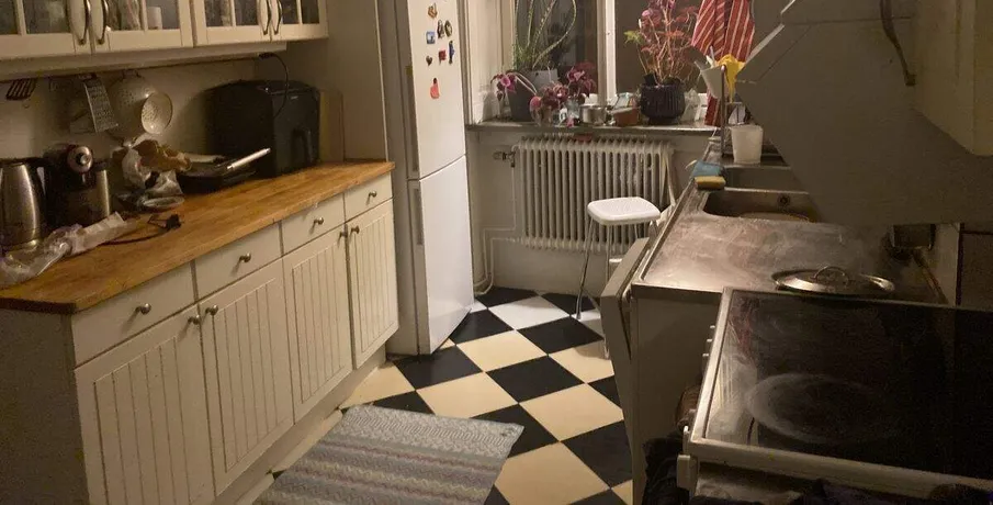 Det är en fyrarumslägenhet Jag är en 49-årig kvinna som arbetar i Norrmalm och har min 13-årige son varannan vecka. När han är hemma har vi en vardagsrytm där vi går upp runt 06.45 på vardagarna. När han är här känns allt mer levande och när han åker blir det väldigt tyst. Den dag han lämnar brukar jag boka städning i tre timmar för att fräscha upp hela lägenheten, inklusive ditt rum. Hyran inkluderar el, internet och städmaterial. Självklart delar vi på köket, och du är välkommen att använda den utrustning som redan finns. Du är också varmt välkommen att använda vardagsrummet de veckor min son inte bor här – han kan vara lite stökig, så på det sättet blir det enklare för alla. Vardagsrummet är charmigt och vetter mot huvudgatan. Lägenheten är enkel men ligger i ett fantastiskt läge. Du får ett eget rum med medeltida känsla – stenväggar och väldigt tyst. Om du behöver kan jag hitta ett litet skrivbord och en stol i ditt rum.