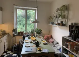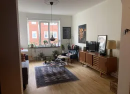 Unik 4:a med två toaletter i gårdshus anno 1870, tryggt belägen inne på en innergård på charmiga Gamla Väster! Utanför porten nås stadens puls med Malmö Centralstation enbart 8 minuters promenad bort och Lilla Torgs rika restaurangutbud precis runt knuten. Trots sitt city nära läge känns lägenheten som en lugn oas med sin otroligt mysiga innergård som bjuder in till många sitt och grillmöjligheter på en lugn adress med enbart 3 företag och 4 lägenheter, varav 2 av lägenheterna finns i gårdshuset. Via en ljus hall med plats för avhängning når man ett L:format vardagsrum med trevlig och socialt öppen planlösning mot köket. Mellan vardagsrum och kök finns en synlig bjälke från golv till tak som vittnar om lägenhetens historia och ger karaktär till en annars modern bostad. Lägenheten har ett otroligt ljusinsläpp med många fönster med vackra fönsterkarmar av marmor och ljus ekparkett på golven. Både vardagsrummet och köket badar i solljus och från köket har man sommartid utsikt över L’enotecas charmiga uteservering. Köket är utrustat med diskmaskin, spishäll och fläkt och har en flyttbar köksö och plats för större matgrupp. Spottar finns infällt i taket. I vardagsrummet finns en permanent platsbyggd bokhylla med en dörr som leder till det minsta sovrummet, vilket är i storlek med kontor eller barnrum. Vägg i vägg finns det mellanstora sovrummet som rymmer en dubbelsäng och övrig förvaring. Via köket når man de privata delarna av lägenheten genom en långsmal korridor som också leder till det större badrummet. Badrummet är helkaklat med stor lyxig helspegel och rymlig dusch där den föregående hyresgästen hade ett litet sittbadkar. I slutet av korridoren nås de privata delarna som har högt i tak och vacker stavparkett på golvet. “Halvan” är rymlig och möblerbar och rymmer även ett mindre, också helkaklat, badrum med härlig takdusch. Vidare når man det största sovrummet med gott om plats för dubbelsäng och övrigt möblemang och rymmer även en walk in closet. Detta rum har tidigare haft ännu en ingång till lägenheten som vi har fått igensatt men det går att öppna upp igen om man vill, vilket hade varit perfekt om man är ett kollektiv som önskar två ingångar och en privat vinge med separat toalett. En mindre tvättstuga med tvättpelare delas av 3 hushåll nere på innergården. Förråd finns inte utan är beläget i närliggande fastighet.SÖKES: Sekelskiftes lägenhet! Eventuellt upp till funkis - äldre charm med tillexempel struktur, dubbeldörrar och högt i tak är ett krav. Details: